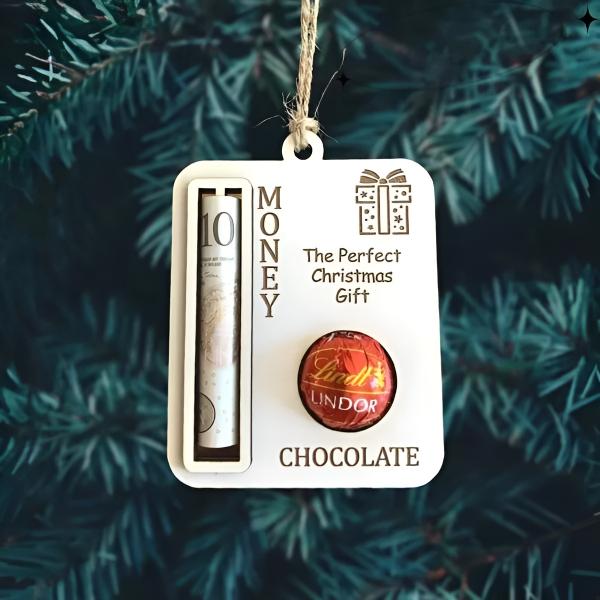 📦 Paket uključuje: 3x Božićna ukrasa s držačem novaca (dizajni: 1 jelen, 1 poklon kutija, 1 s natpisom “Merry Christmas”)
