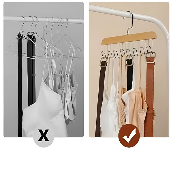 Umorni ste od zatrpanih grudnjaka i kravata koje zauzimaju nepotrebni prostor? Naša OCTAHANGER vješalica s 8 kuka dizajnirana je za transformaciju pohrane odjeće, održava donje rublje i dodatke uredno raspoređenim i elegantno prikazanim.