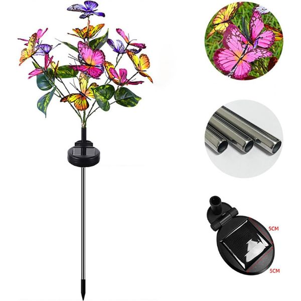 Sa realističnim leptirima od tkanine i raznobojnim LED bajkovitim svjetlima, ova vrtna svjetla na solarni pogon sigurno će sve oduševiti. Dodajte otkačen dodir svom vrtnom dekoru s njihovim jedinstvenim dizajnom. LED svjetla su energetski učinkovita i emitiraju topao, primamljiv sjaj.