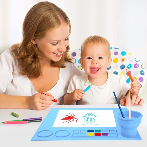 Naša prva prostirka s ugrađenom sklopivom čašicom za čišćenje kistova. Posuda je dizajnirana za držanje vode i čišćenje kistova.