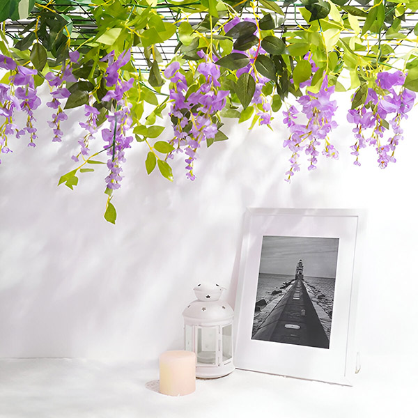 Nema potrebe baviti se vinovom lozom ili cvijećem koje blijedi i vene. Naša simulacija glicinije izrađena je od visokokvalitetne svile i fleksibilne plastike,zbog čega zauvijek zadržavaju svoju vitalnost. Ovo izdržljivo cvijeće dizajnirano je da traje, pružajući vam prekrasno i trajno rješenje za dekor.