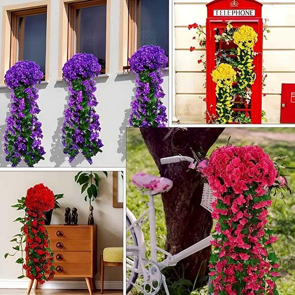 Unesite dodir elegancije u bilo koji prostor s našim realističnim umjetnim visećim cvijećem. Napravljeni od izvrsne svilene tkanine i visokokvalitetne plastike, ovi viseći cvjetovi dodaju prirodni šarm u vašu okolinu.