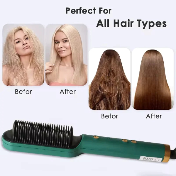 Ovaj svestrani 2-u-1 uređaj, koji kombinira peglu i češalj, omogućuje i ravnanje i uvijanje kose te osigurava glatku, salonsku frizuru u samo 10–15 minuta.