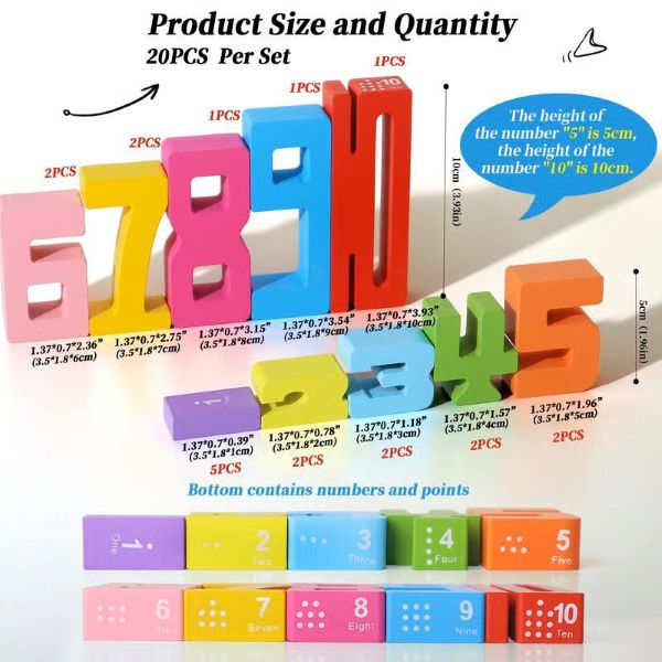 1x Montessori drveni set brojčanih blokova (20 kom) | NUMBLOCK