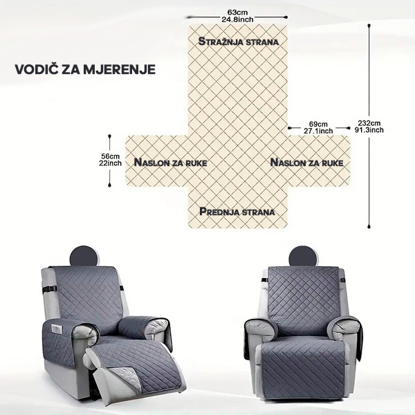 Protuklizno dno hvata se za fotelju i drži presvlaku na mjestu.