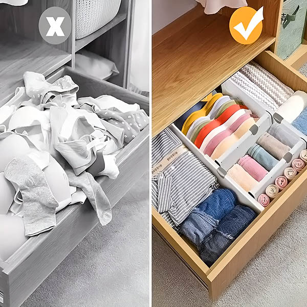 Dani kaotičnih i prepunih ladica su iza vas. S našim podesivim razdjelnicima, pretvaranje bilo kojeg neurednog prostora u savršeno organizirano područje je jednostavno. Uz elegantan dizajn i brzu instalaciju, postat će ključni alat za jednostavnu pohranu.