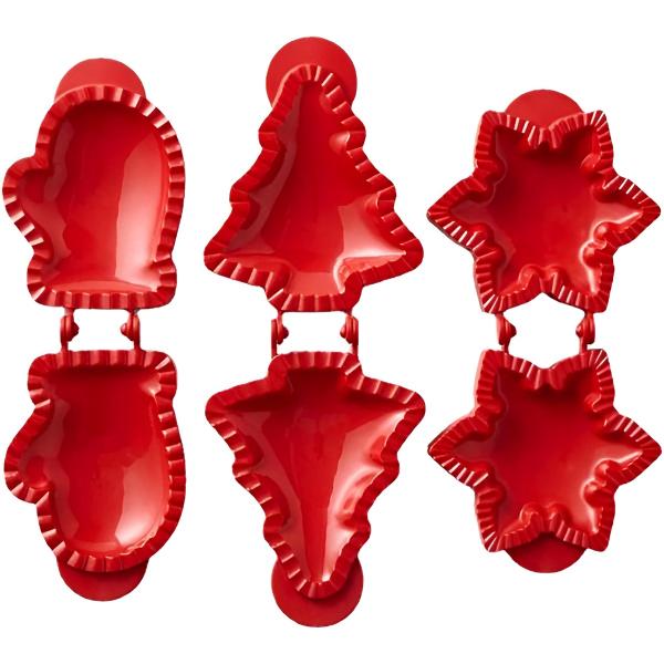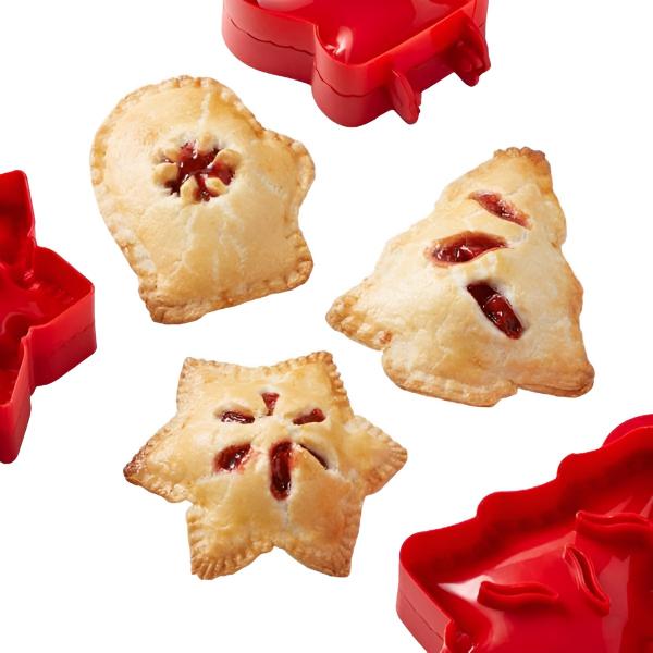 Jednostavno pritisnite, napunite i zatvorite tijesto koristeći zabavne oblike poput rukavice, božićnog drveta i pahulje.