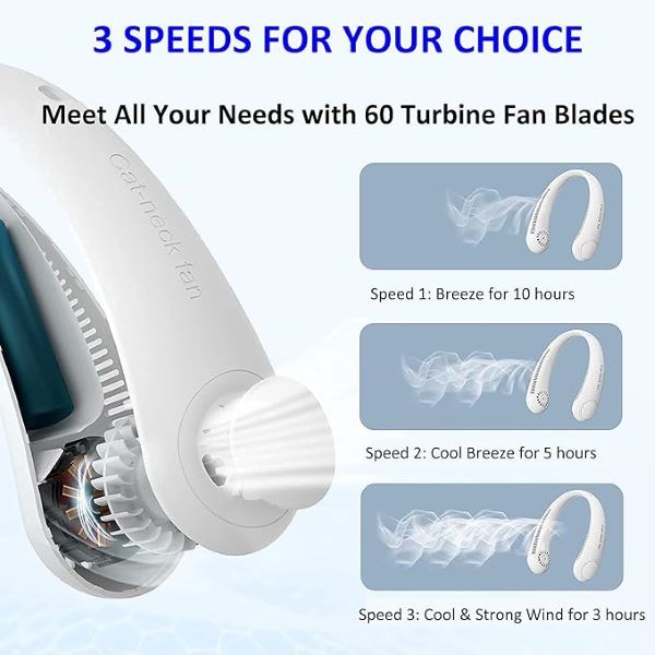 Izrađen od ABS materijala i mekanog silikona, ovaj ventilator za vrat ima fleksibilan dizajn rotacije od 360°,