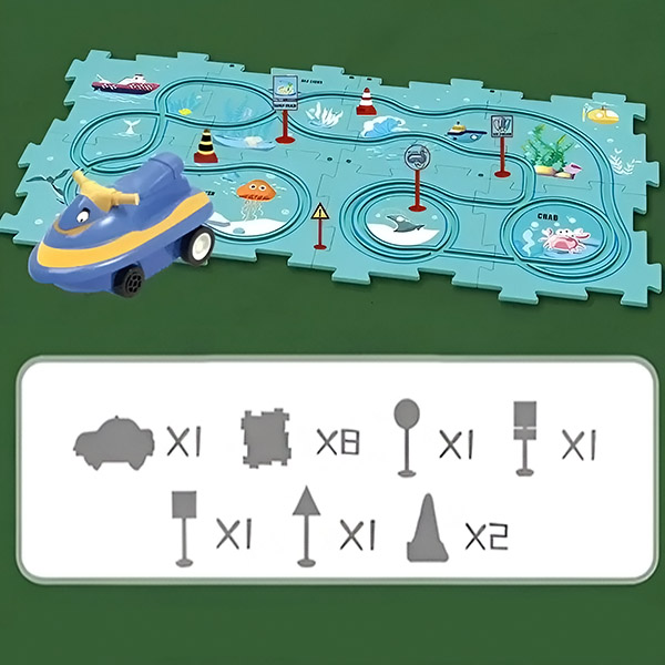 Set uključuje više dijelova staze koji djeci omogućuju jednostavno stvaranje različitih izgleda, poboljšavajući njihovu kreativnost i vještine rješavanja problema.