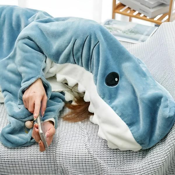 Bilo da ste dijete ili samo dijete u srcu, ova razigrana deka kostim morskog psa zasigurno će donijeti osmijeh i toplinu u svaki dom.