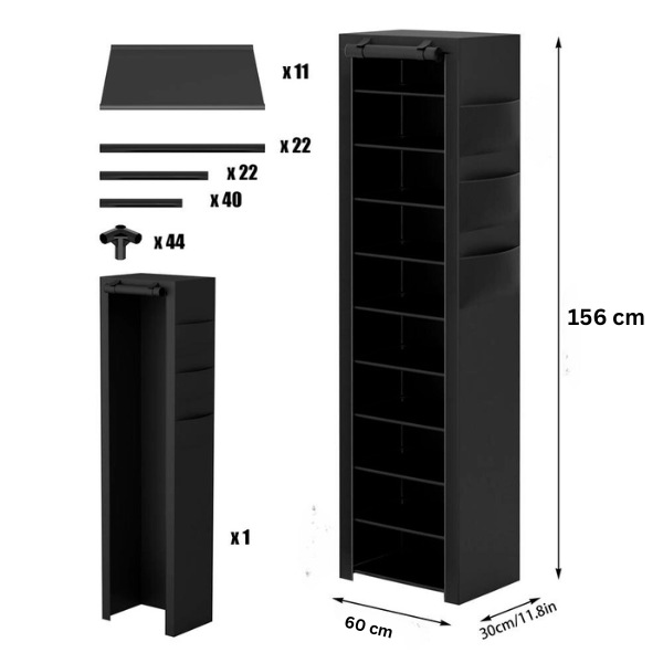 Opremljen tkaninom otpornom na prašinu i zatvaračem. Ovaj stalak za cipele osigurava da vaše cipele ostanu čiste, štiteći ih od prašine i prljavštine.