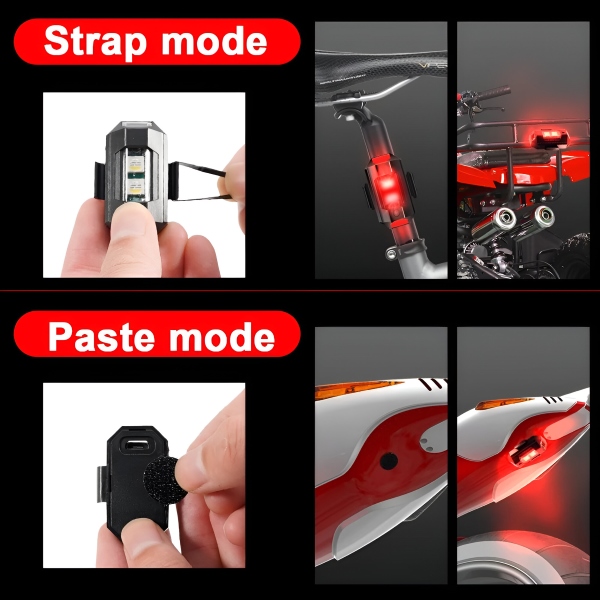 Ova svjetla su nevjerojatno svestrana i dizajnirana za automobile, motocikle, bicikle i dronove. Odaberite između načina postavljanja s čičak trakom ili gumenim prstenom za sigurno i jednostavno postavljanje. Nema potrebe za kompliciranim alatima ili stručnom pomoći.