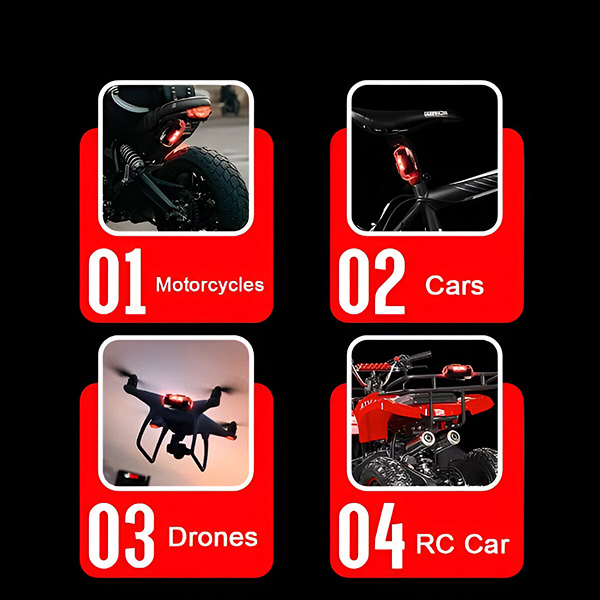Većina svjetala zahtijeva nosače, vijke ili trajne preinake koje ne odgovaraju različitim vozilima. STROBIES se pričvršćuje u nekoliko sekundi pomoću čičak traka ili gumenih prstenova – bez alata, bez bušenja, bez oštećenja vašeg vozila. Premještajte ga s automobila na motocikl, bicikl, dron, kacigu ili ruksak kad god vam zatreba.