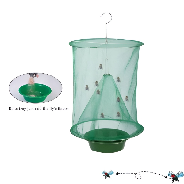 Ova viseća zamka za muhe je bezopasna, bez ikakvih otrovnih insekticida i kemikalija. Dovoljno je mamcem privući muhe koje će nakon ulaska u kavez prirodno uginuti zbog nedostatka hrane. To je najbolji izbor za široke i otvorene prostore kao što su travnjaci, parkovi, tržnice, kantine, restorani, klaonice, farme, zeleni pojasevi, toaleti, odlagališta (na zemlji) i druga javna mjesta.