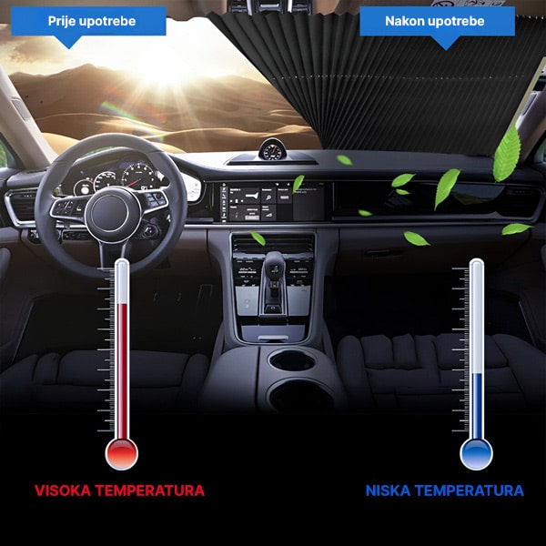 Naš proizvod učinkovito blokira štetne UV zrake, sprječavajući pregrijavanje i propadanje vašeg automobila. Pomaže održati hladniju unutrašnjost i značajno smanjuje oštećenja sjedala i kontrolne ploče vašeg automobila.